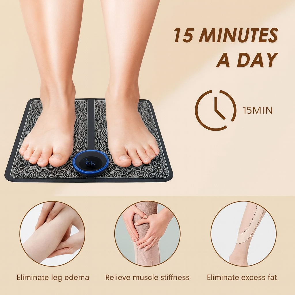 The EMS Foot Massager delivers a smooth, pulse-based stimulation that helps awaken tired feet with minimal effort. Designed with a slim profile and simple controls, it fits seamlessly into your daily routine—whether you're unwinding at home, working at your desk, or taking a quick moment to recharge.